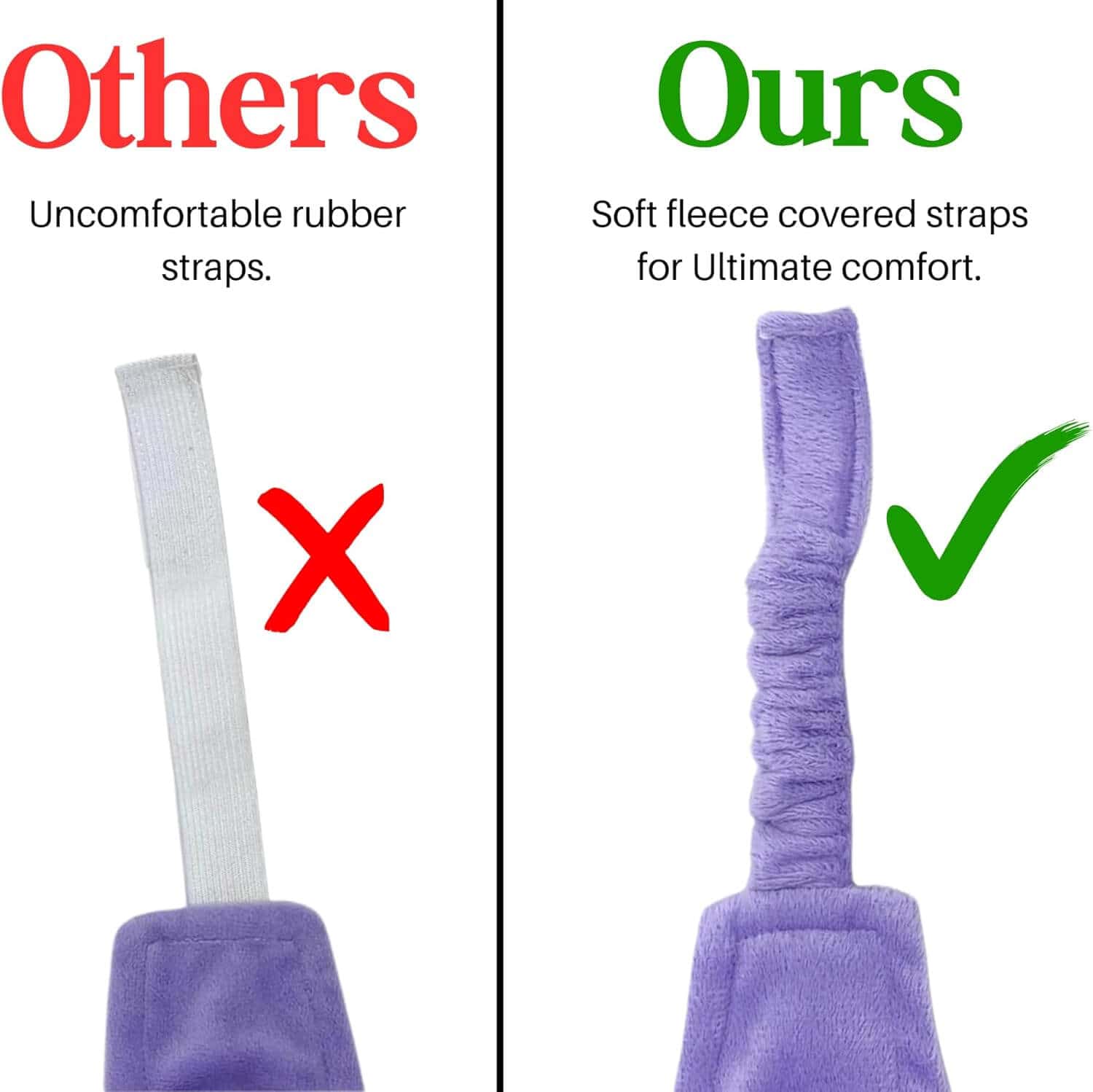 So comfortable and the Velcro is perfect. It doesn’t hurt your head and lays flat when sleeping.